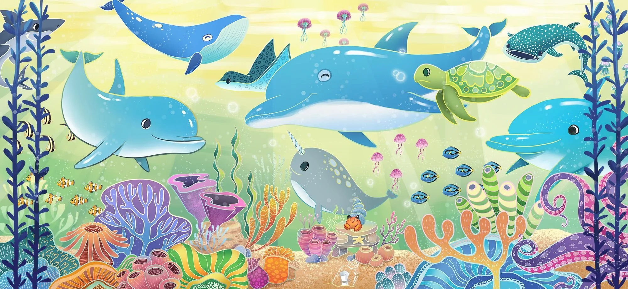 Four family-room themes—Travel, Ocean, Dinosaurs, Forest—with delightful Taiwan endemic wildlife woven into the illustrations.